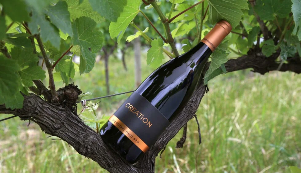 Located on the Hemel-en-Aarde Ridge, Creation’s elevation, proximity to the Atlantic Ocean, cool night index (diurnal fluctuation of 12°C) and early morning cloud cover make it possible for grapes to ripen slowly, resulting in wines with remarkable freshness and finesse. In our Chardonnay vineyard, at 260 metres above sea level, seams of 590-million-year-old quartz sparkle through the clay-loam soils of 450-million-year-old Bokkeveld Shale. These growing conditions create wines with steely tension as well as elegance and finesse.